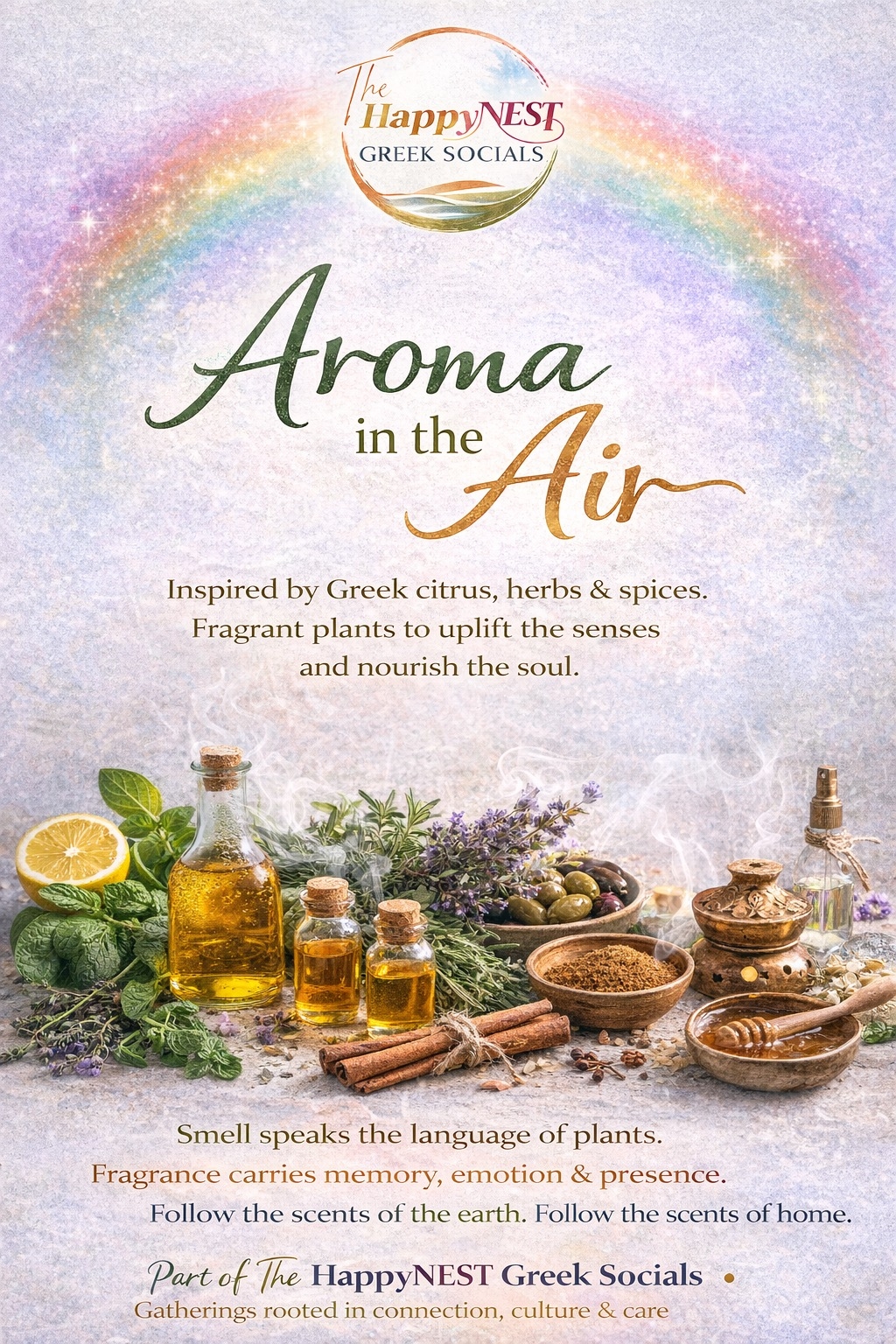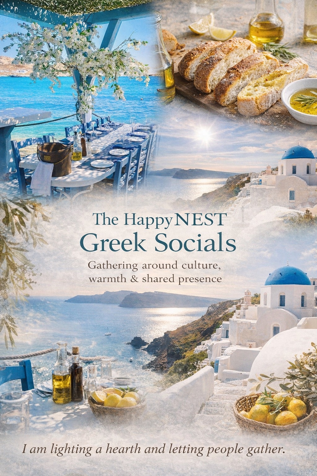 Community gatherings rooted in Greek culture, food, conversation, colour, and sensory nourishment.